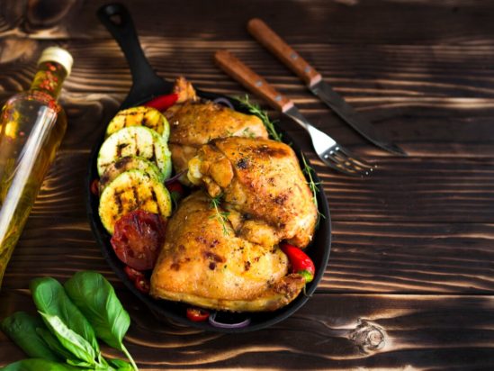 - 4 μπούτια κοτόπουλου με κόκαλα, χωρίς πέτσα (περίπου 1 1/2 – 2 κιλά)