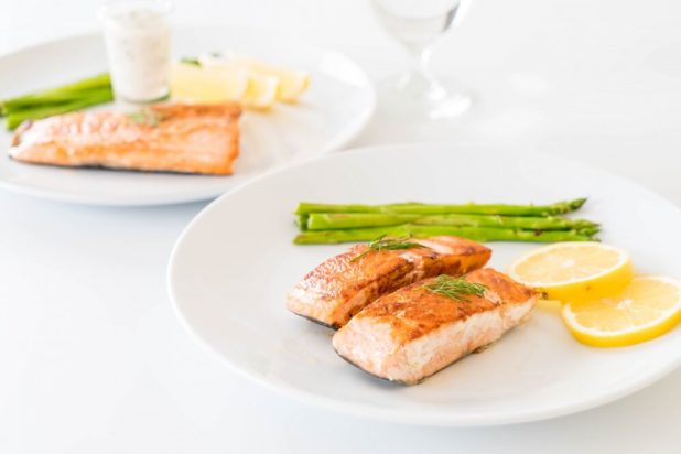 - Τοποθετήστε τα κομμάτια σολομού σε ένα μέτριο μπολ.