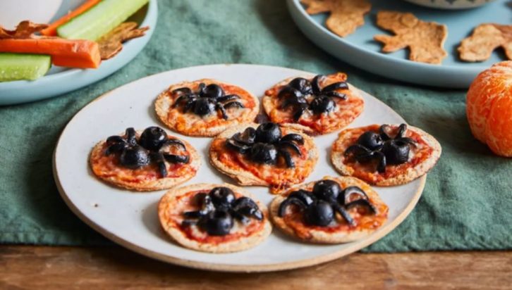 Η συνταγή του Jamie για τις “Πίτσες-Αράχνες” (Spider Pizzas) είναι μια πανεύκολη, μίνι εκδοχή πίτσας, ιδανική για μικρούς σεφ. Με βάση από τορτίγια ολικής άλεσης και ελάχιστα υλικά, το μυστικό της συνταγής κρύβεται στον ευφάνταστο τρόπο που χρησιμοποιεί τις μαύρες ελιές για να δημιουργήσει τρομακτικές – αλλά πεντανόστιμες αραχνούλες που λιώνουν μαζί με το τυρί στον φούρνο.
