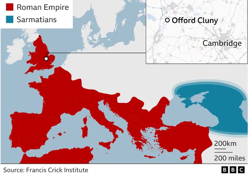 Η έρευνα λοιπόν δείχνει ότι ο σκελετός που βρέθηκε στο Cambridgeshire ανήκει σε άνθρωπο από μια νομαδική ομάδα γνωστή ως Σαρμάτες. Πρόκειται για την πρώτη βιολογική απόδειξη ότι οι άνθρωποι αυτοί ήρθαν στη Βρετανία από τις πιο απομακρυσμένες περιοχές της ρωμαϊκής αυτοκρατορίας και ότι ορισμένοι από αυτούς ζούσαν στην ύπαιθρο. Τα λείψανα ανακαλύφθηκαν κατά τη διάρκεια ανασκαφών για τη βελτίωση του δρόμου Α14 μεταξύ του Κέιμπριτζ και του Χάντινγκτον. Οι επιστημονικές τεχνικές που χρησιμοποιούνται σε αυτές τις περιπτώσεις θα βοηθήσουν να επιβεβαιωθούν οι ιστορίες των απλών ανθρώπων που βρίσκονται πίσω από μεγάλα ιστορικά γεγονότα.