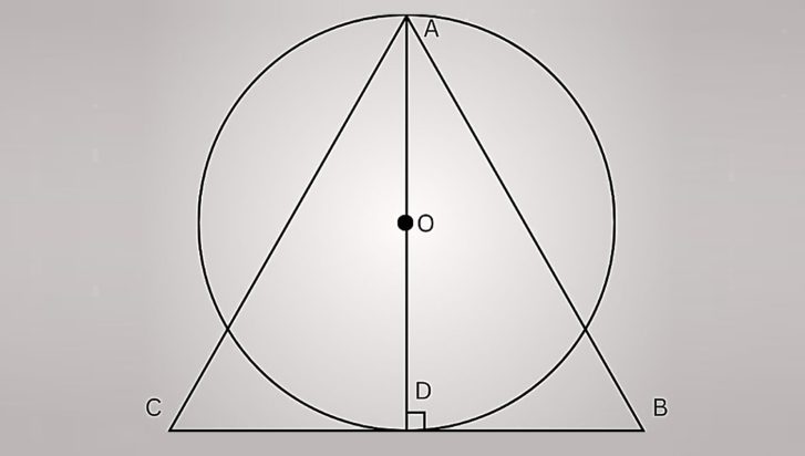 Έτσι συνεπάγεται ότι η διάμετρος του κύκλου (AD) είναι 6 cm. Όμως η διάμετρος του κύκλου συμπίπτει με το ύψος του ισόπλευρο τριγώνου ABC.