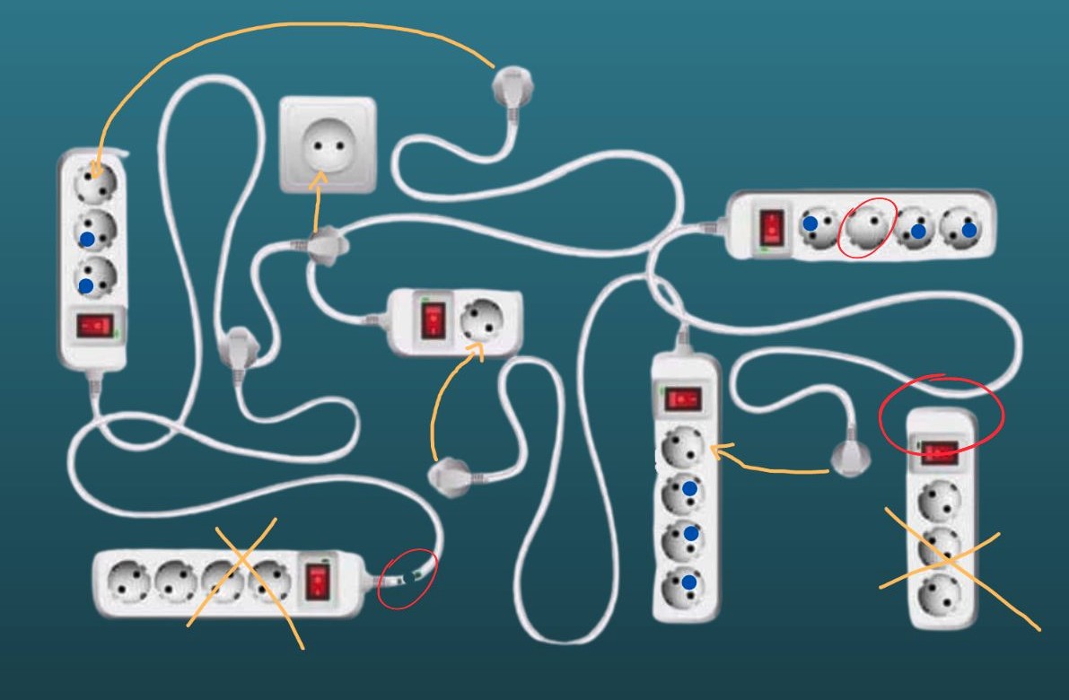 Αυτός ο αριθμός προκύπτει από την προσεκτική παρατήρηση των λεπτομερειών. Για παράδειγμα ένα πολύπριζο δεν μπορεί να χρησιμοποιηθεί αφού έχει κομμένο καλώδιο.