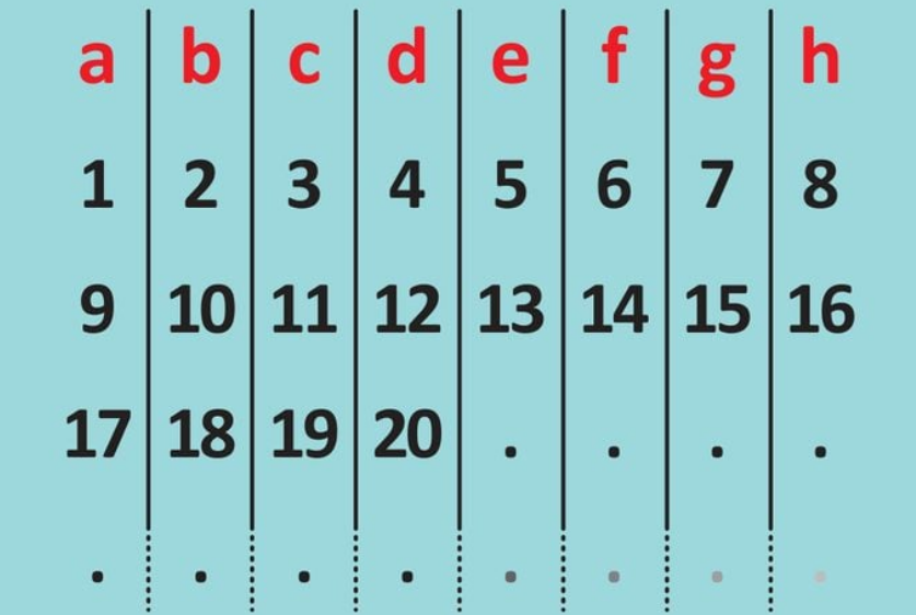 Η παρακάτω εικόνα παρουσιάζει 8 στήλες από το Α έως το H (αγγλικά γράμματα), στις οποίες έχουν τοποθετηθεί οι θετικοί ακέραιοι από το 1 έως το 20. Το τεστ σας ζητάει να βρείτε σε ποια στήλη θα είναι ο αριθμός 100. Μπορείτε να λύσετε τον γρίφο σε λιγότερο από 10 δευτερόλεπτα;