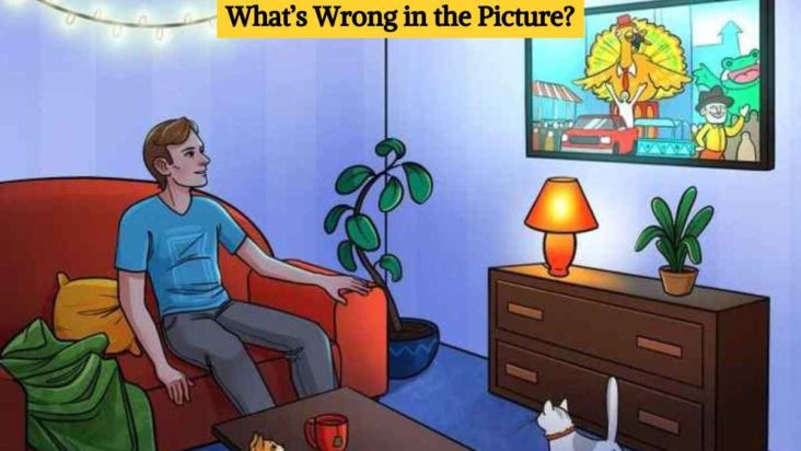 H παρακάτω εικόνα υπάρχει έναν άνδρα να είναι καθισμένος αναπαυτικά στον καναπέ του σπιτιού του και να βλέπει τηλεόραση, ενώ στο σαλόνι υπάρχουν και δύο γατούλες. Υπάρχει ένα λάθος στην εικόνα και η πρόκληση είναι να το εντοπίσετε μέσα σε 7 δευτερόλεπτα.