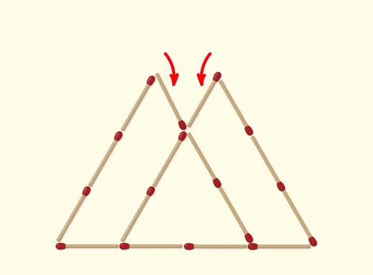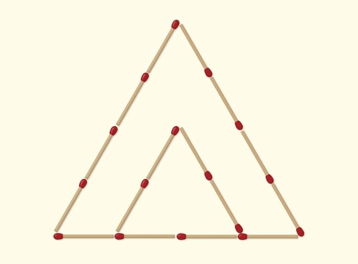 Στο παρακάτω τεστ IQ εμφανίζονται δύο τρίγωνα, το ένα μέσα στο άλλο, κατασκευασμένα από σπίρτα. Αυτό που πρέπει να κάνετε είναι να δημιουργήσετε 3 τρίγωνα, μετακινώντας μόλις 2 σπίρτα.