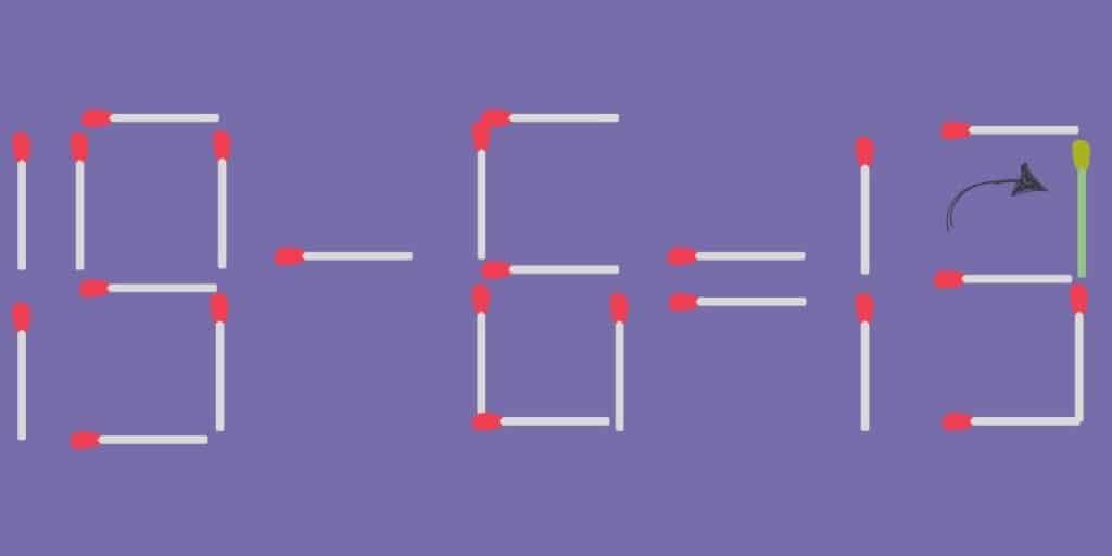 Μετακινήστε το κάθετο αριστερό σπίρτο από το 6 στο 15 στα δεξιά μετατρέποντάς το σε 13. Έτσι η εξίσωση είναι σωστό καθώς 19 – 6 = 13