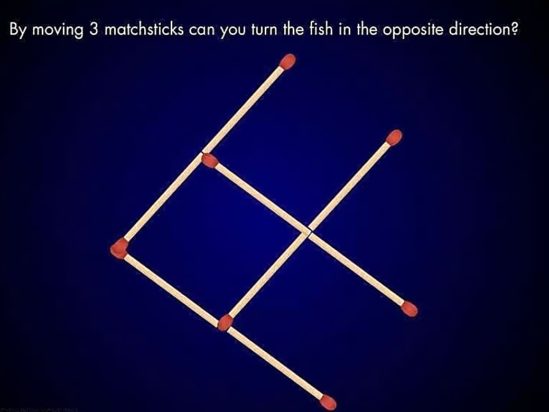 Η παρακάτω εικόνα δείχνει ένα ψάρι κατασκευασμένο από σπίρτα και το τεστ σας ζητά να αλλάξετε την κατεύθυνση που κοιτάει μετακινώντας 3 σπίρτα. Ωστόσο δεν έχετε πολύ χρόνο. Πρέπει να βρείτε την απάντηση σε μόλις 28 δευτερόλεπτα.