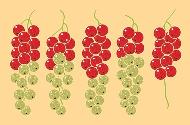 Αν παρατηρήσετε προσεκτικά την εικόνα, θα δείτε ότι ο αριθμός των άγουρων μούρων σε κάθε τσαμπί ισούται με τον αριθμό των ώριμων μούρων στο προηγούμενο τσαμπί.