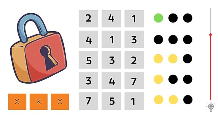 Το τεστ περιλαμβάνει σειρές με συνδυασμούς αριθμών που συνοδεύονται από χρωματιστές κουκκίδες που χρησιμεύουν ως ενδείξεις. Είναι απαραίτητο να κατανοήσετε τη σημασία αυτών των σημείων για να βρείτε τον σωστό 3ψήφιο κωδικό.