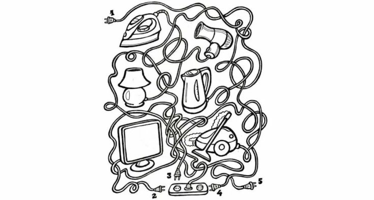Στο παρακάτω τεστ IQ εμφανίζονται κάποιες ηλεκτρικές συσκευές με τα βύσματά τους που έχουν πάνω τους κάποιους αριθμούς. Αυτό που πρέπει να κάνετε είναι να καταλάβετε ποια συσκευή αντιστοιχεί σε ποιο βύσμα.