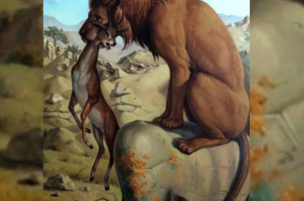 Αντίθετα, όσοι διακρίνουν πρώτα ένα μεγάλο λιοντάρι που καταβροχθίζει το θήραμά του έχουν μία κυριαρχική προσωπικότητα. Αυτή η ισχυρή φιγούρα, σύμβολο εξουσίας και ελέγχου, μπορεί να υποδηλώνει μια τάση προς τον ατομικισμό και μια ορισμένη κοινωνική απομόνωση.