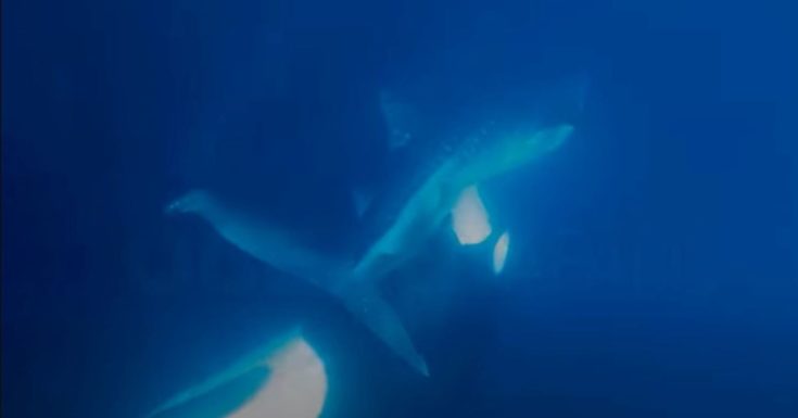 Το βίντεο καταγράφηκε από τον 58χρονο δύτη Τζέιμς Μοσκίτο στη Θάλασσα του Κορτέζ στην Καλιφόρνια τον Απρίλιο, όταν αυτός και άλλοι δύτες συνάντησαν οκτώ φάλαινες δολοφόνους.