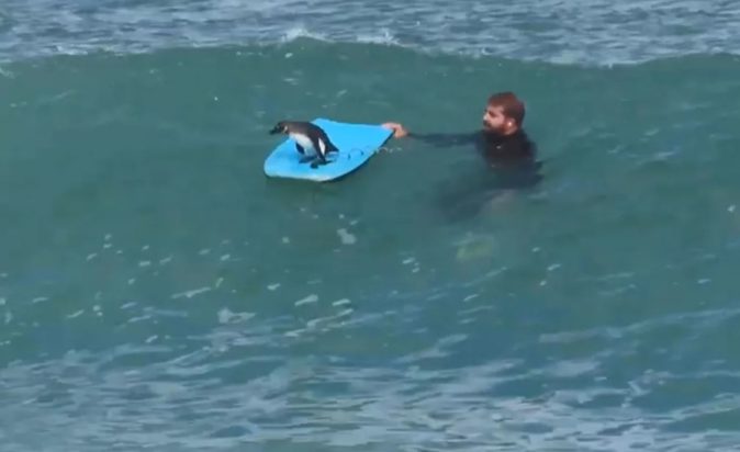 “Surf’s up, bruh!” 🐧🏄 An inquisitive African penguin shredded some waves on a bodyboard off the coast of Cape Town, South Africa. pic.twitter.com/LA5X9UgeGL