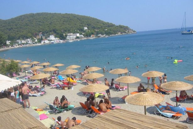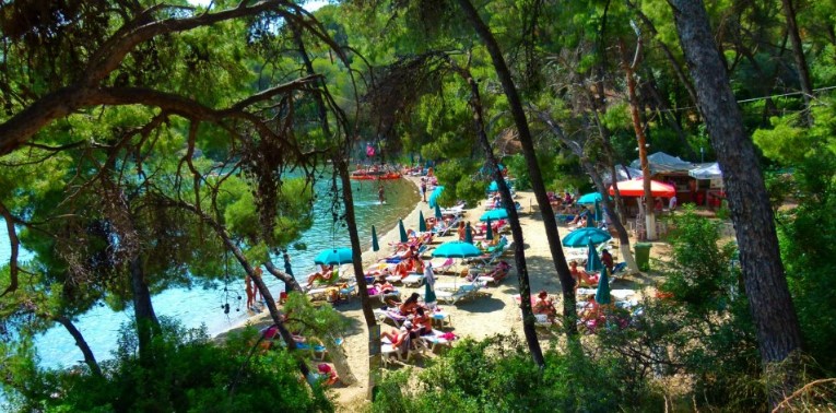To Λιμανάκι της Αγάπης είναι ένας πανέμορφος κόλπος, με τιρκουάζ νερά, που «πνίγεται» στο πεύκο. Για να φτάσει κάποιος στην παραλία, πρέπει να κατέβει ένα μονοπατάκι από τον κεντρικό δρόμο. Η παραλία είναι σχετικά μικρή, αλλά τόσο η φυσική ομορφιά, όσο και τα ήρεμα γαλαζοπράσινα νερά την κατατάσσουν από τις δημοφιλέστερες παραλίες του νησιού. Και αυτή είναι πλήρως οργανωμένη παραλία και μπορείτε και εδώ να βρείτε ό,τι χρειάζεται ένας παραθεριστής για καφέ και snack.