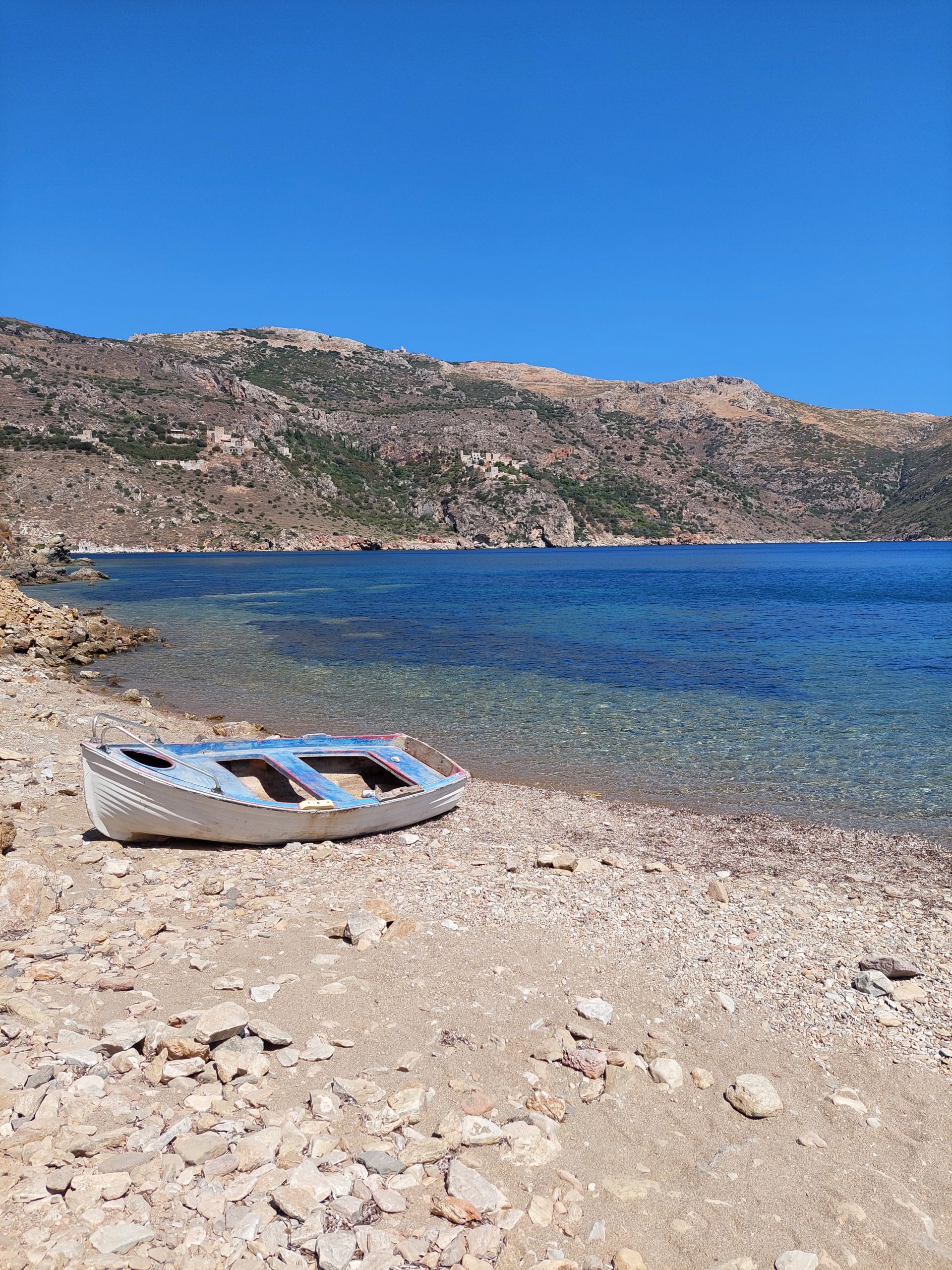 Μαγευτικό Λιμένι, γαλήνιο Πόρτο Κάγιο, έρημη πλέον Βάθεια, Ακρωτήριο Ταίναρο, το νοτιότερο σημείο της ηπειρωτικής Ελλάδας, στο οποίο βρίσκεται και η σπηλιά του Άδη κατά τον Όμηρο. Το φτάσαμε περπατώντας 40′. Η επιστροφή έγινε ακριβώς πριν το φεγγάρι μας κλέψει την ορατότητα που ήταν αναγκαία, καθώς η διαδρομή δεν ήταν βατή. Μπάνια σε απίστευτες παραλίες! Κουβέντες με ντόπιους πίνοντας ελληνικό καφεδάκι. Αστέρια να λάμπουν πάνω μας τα βράδια και τσακάλια να ουρλιάζουν δημιουργώντας μυστήριο!