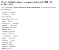 Το δημοσίευμα , που αναπαράγει αντίστοιχο του https://travel.thewom.it/ που αναφέρεται επίσης στο μαγικό νησί, γράφει: « Η επιθυμία για καλοκαιρινές διακοπές μεγαλώνει δραματικά. Ευτυχώς, μετά από δύο χρόνια, η πανδημία φαίνεται να μας δίνει ανάσα , οπότε δεν υπάρχει καμία δικαιολογία να αναβάλουμε τις πολυαναμενόμενες διακοπές. Ναι, αλλά πού; Η ενότητα Ταξίδια του portal The Wom συγκέντρωσε τη λίστα με τους καλύτερους προορισμούς για τις καλοκαιρινές διακοπές του 2022. Είστε έτοιμοι να τους ανακαλύψετε μαζί μας;».