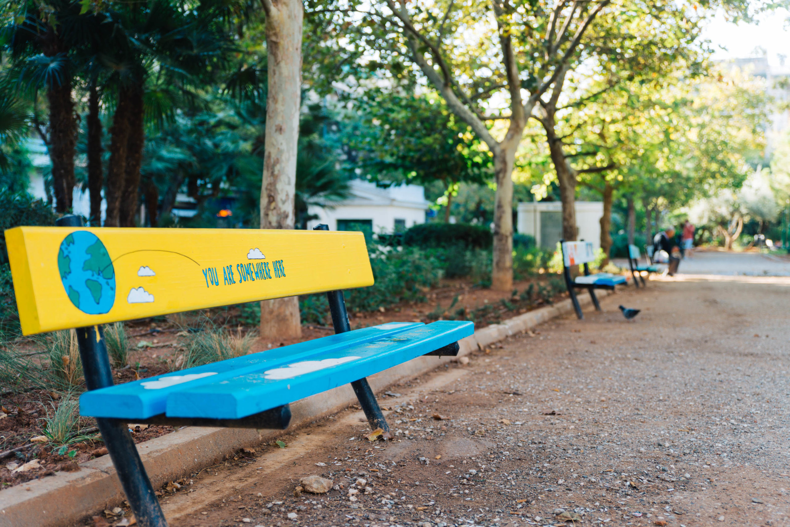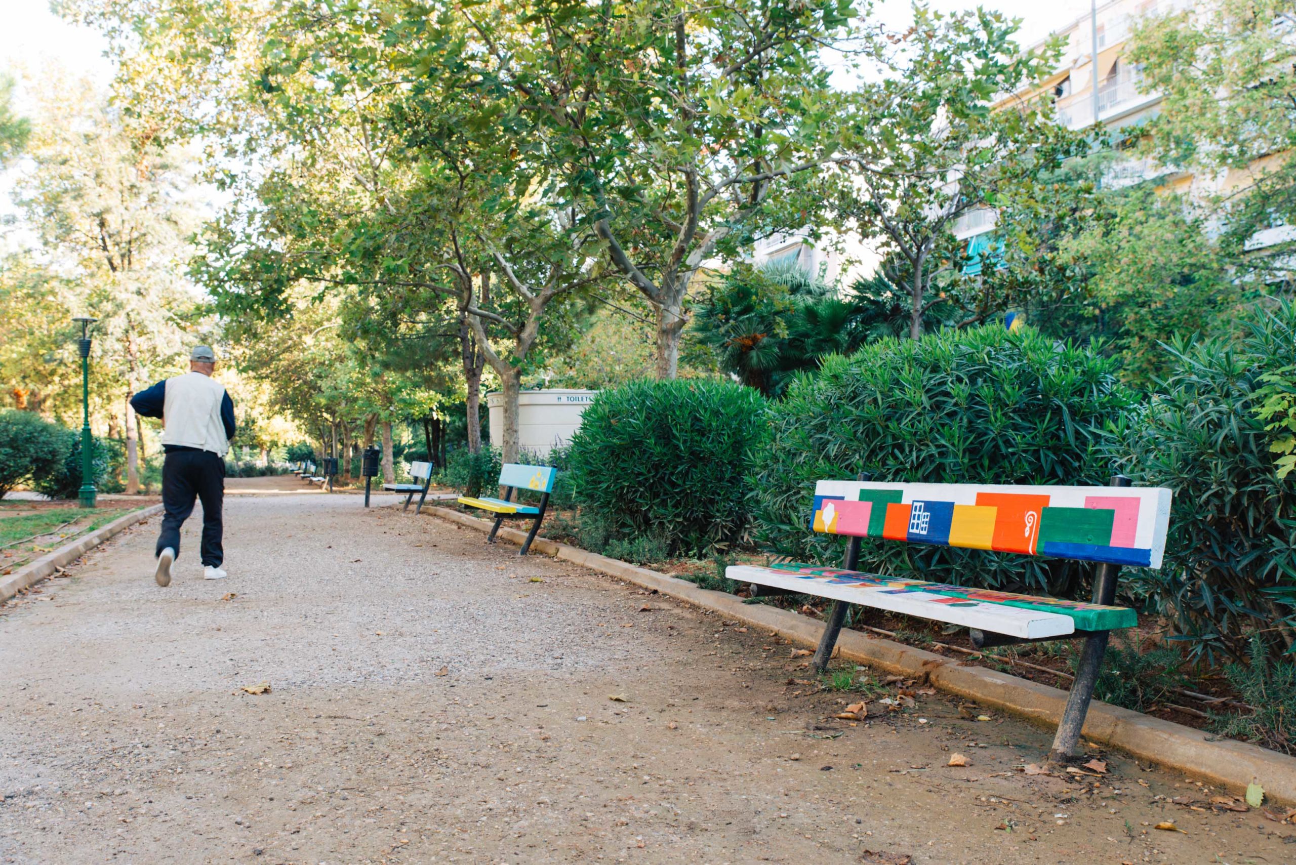 Τέλος, τα 27 παγκάκια του πάρκου φιλοτεχνήθηκαν από σπουδαστές του εκπαιδευτικού ομίλου ΑΚΤΟ, στο πλαίσιο ευρύτερης συνεργασίας με την Ολυμπιακή Ζυθοποιία, δίνοντας εικαστική χροιά στο χώρο.