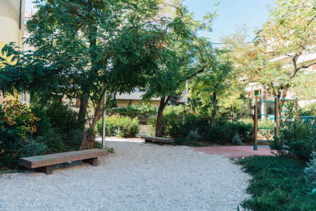 Το pocket park προσφέρεται και ως χώρος ατομικής άθλησης, καθώς στο κέντρο του τοποθετήθηκαν μονόζυγα, τα οποία τηρούν όλες τις προδιαγραφές ασφαλείας. Για τη μέγιστη ασφάλεια των επισκεπτών, ακόμη και τις βραδινές ώρες, χρησιμοποιήθηκαν τρεις αυτόνομες κολώνες με πάνελ συλλογής ηλιακής ακτινοβολίας, που ενισχύουν αποτελεσματικά τον φωτισμό του πάρκου.