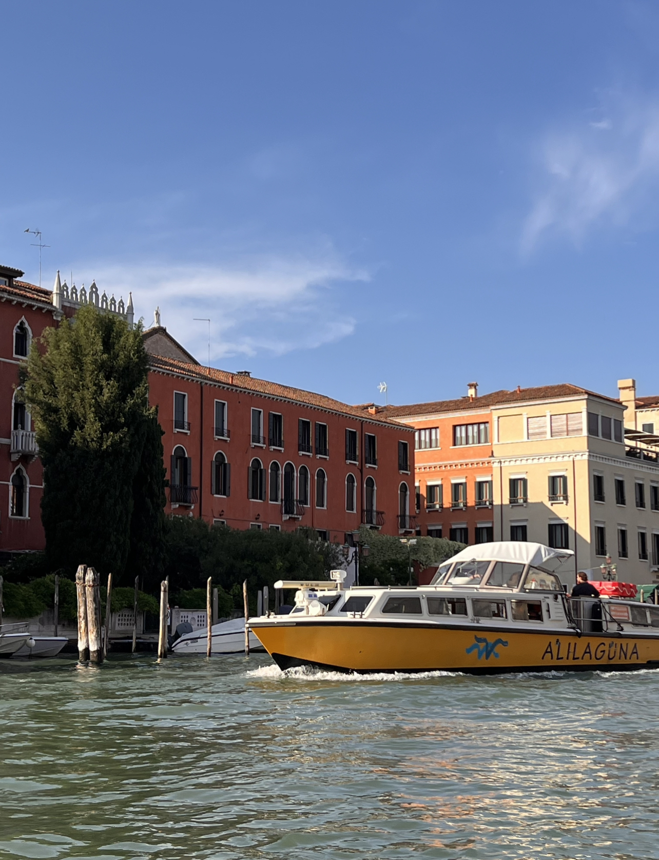 Ο επόμενος προορισμός ήταν η μαγευτική Βενετία. Ό,τι και αν φανταζόμασταν για αυτή την πόλη η πραγματικότητα απέχει πολύ. Στην κυριολεξία, πρόκειται για την πόλη του Νερού. Με το που αντικρίσαμε τη Βενετία, μπήκαμε σε ένα παραμύθι γεμάτο γόνδολες, χρώματα και μια ατμόσφαιρα που μας συνεπήρε. Είναι μια πόλη με σημαντικό αριθμό αξιοθέατων, για αυτό πρέπει να ξέρετε πως για να τη μάθετε πρέπει να την περπατήσετε. Η βόλτα μας ξεκίνησε από το μεγάλο κανάλι, μια εικόνα βγαλμένη από πίνακα ζωγραφικής. Πλαισιώνεται από επιβλητικά παλάτια όπου σε κάθε ένα από αυτά ζούσε μια σημαντική οικογένεια του παρελθόντος. Το μεγάλο κανάλι είναι γεμάτο ζωή, σε κάθε μας ματιά βλέπαμε γόνδολες, βαπορέτες και ποταμόπλοια.