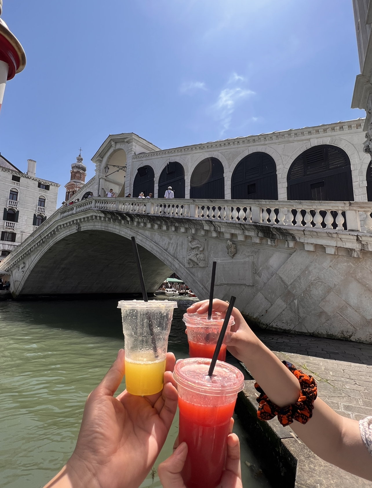 Ο επόμενος προορισμός ήταν η μαγευτική Βενετία. Ό,τι και αν φανταζόμασταν για αυτή την πόλη η πραγματικότητα απέχει πολύ. Στην κυριολεξία, πρόκειται για την πόλη του Νερού. Με το που αντικρίσαμε τη Βενετία, μπήκαμε σε ένα παραμύθι γεμάτο γόνδολες, χρώματα και μια ατμόσφαιρα που μας συνεπήρε. Είναι μια πόλη με σημαντικό αριθμό αξιοθέατων, για αυτό πρέπει να ξέρετε πως για να τη μάθετε πρέπει να την περπατήσετε. Η βόλτα μας ξεκίνησε από το μεγάλο κανάλι, μια εικόνα βγαλμένη από πίνακα ζωγραφικής. Πλαισιώνεται από επιβλητικά παλάτια όπου σε κάθε ένα από αυτά ζούσε μια σημαντική οικογένεια του παρελθόντος. Το μεγάλο κανάλι είναι γεμάτο ζωή, σε κάθε μας ματιά βλέπαμε γόνδολες, βαπορέτες και ποταμόπλοια.