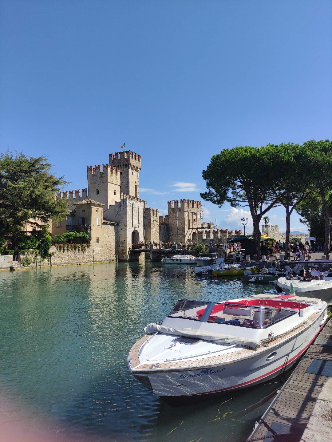 Τελευταία μας επίσκεψη πριν την αναχώρηση η λίμνη Γκάρντα, όπου αποτελεί έναν ειδυλλιακό προορισμό. Αρχικά ξεκινήσαμε την περιήγηση μας με το κάστρο Scaligero, όπου βρίσκεται στην πόλη Sirmione, και χαρακτηρίζεται ως ένα αβύθιστο κάστρο (σύμφωνα με τους ντόπιους), βγαλμένο από παραμύθι. Το Scaligero αποτελεί ένα από τα καλύτερα παραδείγματα της μεσαιωνικής οχύρωσης. Φυσικά δεν παραλείψαμε την κρουαζιέρα στη Λίμνη Γκάρντα! Τα καταγάλανα νερά μας θύμισαν πισίνα ενώ απολαμβάναμε τη θέα των δέντρων.