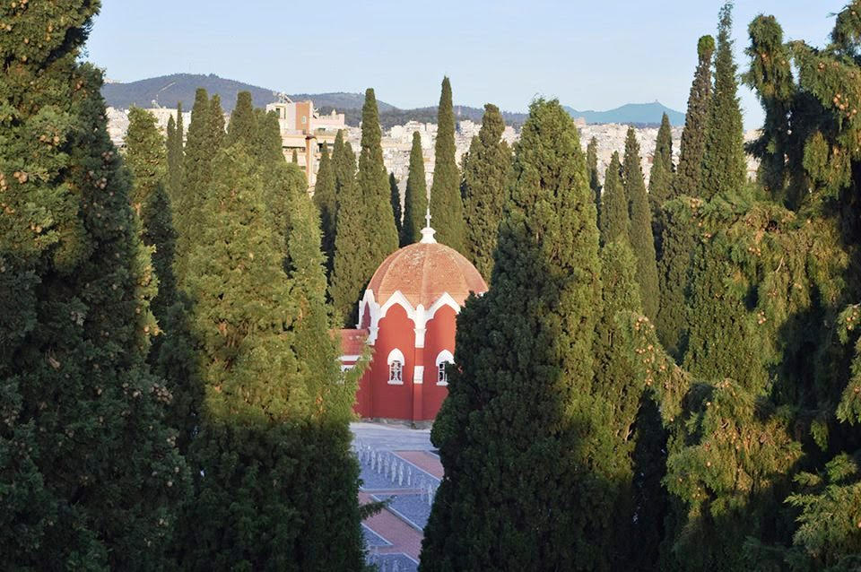 Μέσα σε έναν χώρο με γρασίδι, ο οποίος περιβάλλεται από έναν τοίχο χτισμένο με πέτρα, με είσοδο μία βαριά σιδερένια πόρτα και δύο επιγραφές μία αριστερά και μία δεξιά από την πύλη, βρίσκονται ηρώα, ναΐσκοι και γλυπτά που είναι οι τάφοι σε απόλυτη συμμετρία.