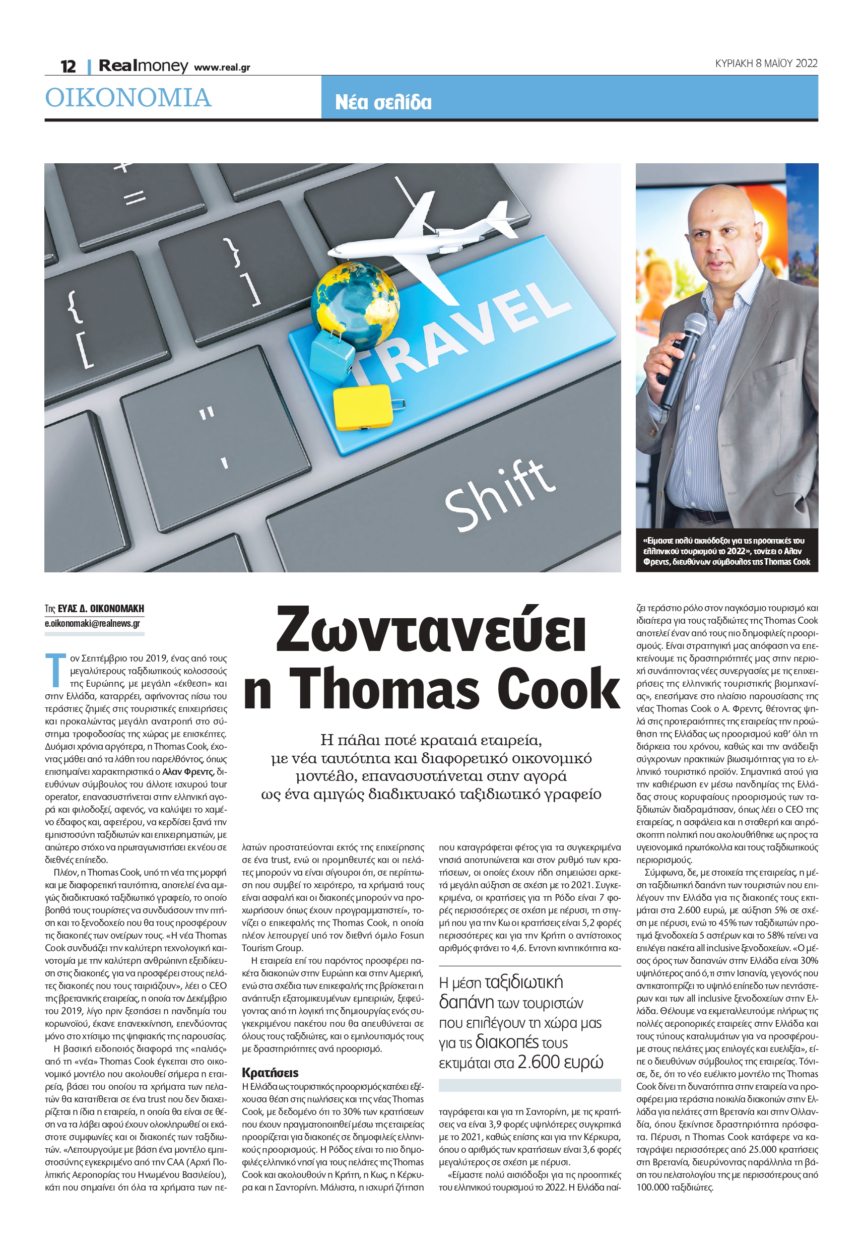Τον Σεπτέμβριο του 2019, ένας από τους μεγαλύτερους ταξιδιωτικούς κολοσσούς της Ευρώπης, με μεγάλη «έκθεση» και στην Ελλάδα, καταρρέει, αφήνοντας πίσω του τεράστιες ζημιές στις τουριστικές επιχειρήσεις και προκαλώντας μεγάλη ανατροπή στο σύστημα τροφοδοσίας της χώρας με επισκέπτες. Δυόμισι χρόνια αργότερα, η Thomas Cook, έχοντας μάθει από τα λάθη του παρελθόντος, όπως επισημαίνει χαρακτηριστικά ο Αλαν Φρεντς, διευθύνων σύμβουλος του άλλοτε ισχυρού tour operator, επανασυστήνεται στην ελληνική αγορά και φιλοδοξεί, αφενός, να καλύψει το χαμένο έδαφος και, αφετέρου, να κερδίσει ξανά την εμπιστοσύνη ταξιδιωτών και επιχειρηματιών, με απώτερο στόχο να πρωταγωνιστήσει εκ νέου σε διεθνές επίπεδο.