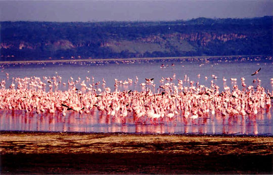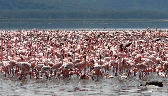 Τα φλαμίνγκο επιλέγουν τη λίμνη Nakuru λόγω της άλγης που συγκεντρώνεται στην επιφάνειά της και προσφέρει άφθονη τροφή στα φλαμίνγκο.
