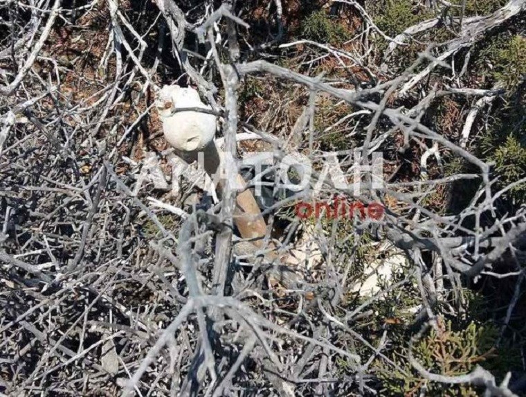 Από την αυτοψία που έγινε στη θέση, όπου ο αλλοδαπός τουρίστας εντόπισε το μακάβριο εύρημα, οι Αστυνομικοί και οι Λιμενικοί βρήκαν κάτω από θάμνο, μια σακούλα απορριμμάτων η οποία περιείχε πολλά οστά. Η σακούλα βρέθηκε κοντά στο φυλάκιο που είχε κτίσει το Δασαρχείο, στο νησί.