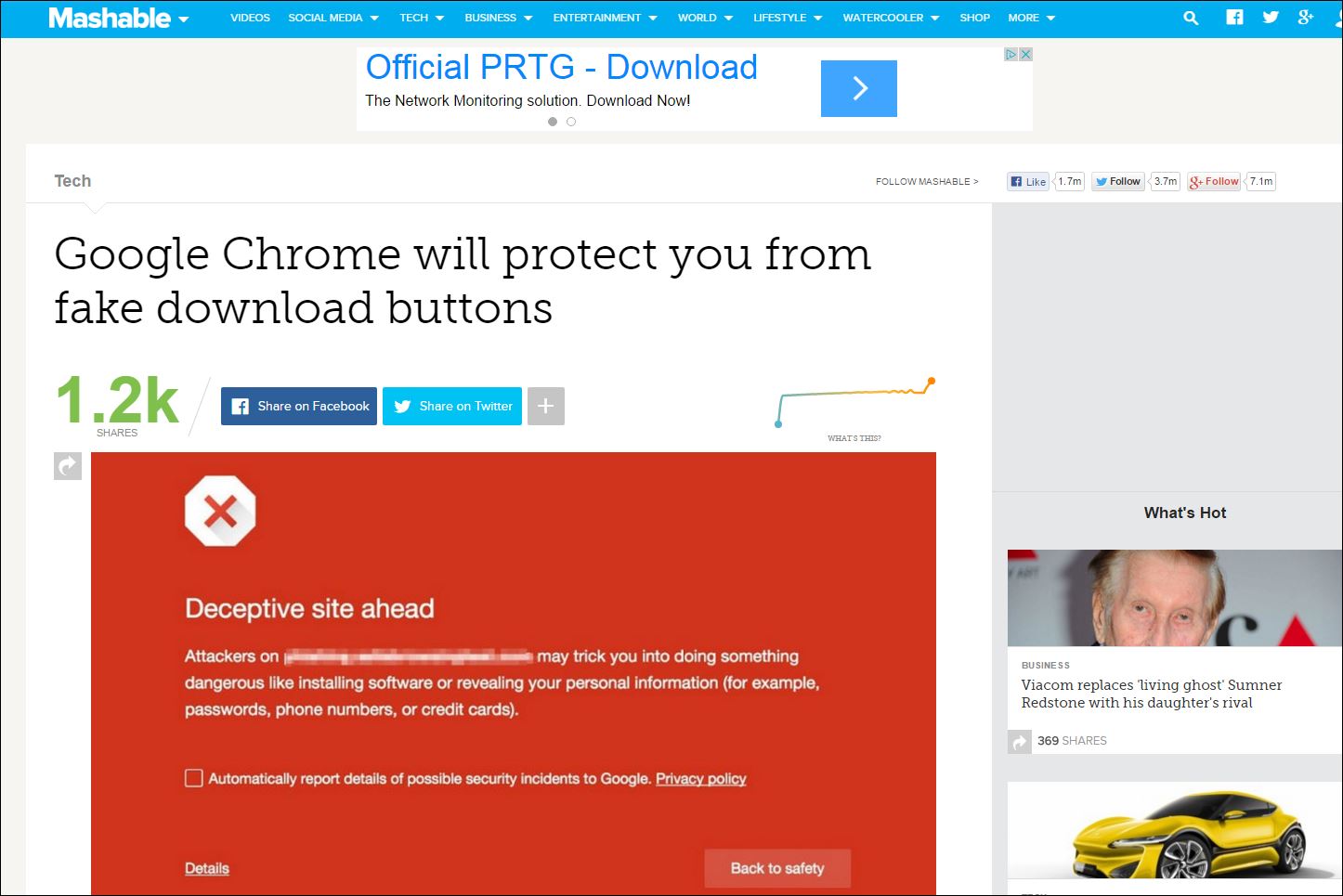 Σύμφωνα με τα όσα αναφέρονται στα ρεπορτάζ του διεθνούς Τύπου, το εν λόγω εργαλείο θα μας προστατεύει από παραπλανητικά buttons, τα οποία κάνουν την εμφάνιση τους σε διάφορα σάιτ. Επί της ουσίας θα εντοπίζονται αυτά με το εργαλείο, Safe Browsing και θα σπεύδει να προειδοποιεί τους χρήστες με το μήνυμα «Deceptive site ahead». Με απλά λόγια θα κινείται ανάλογη διαδικασία μ’ αυτή των «malware sites».
