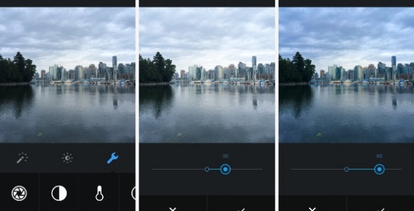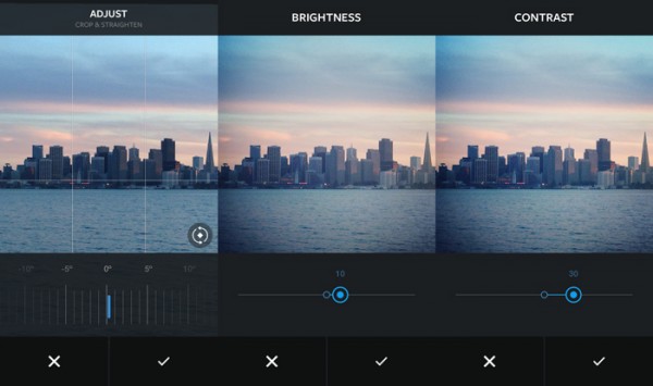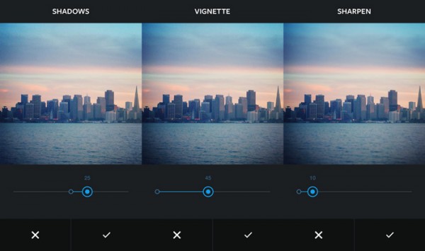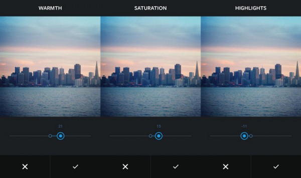 Αν αυτό μόνο δεν μας ικανοποιεί τότε πατώντας το νέο κουμπί στη δεξιά πλευρά κάτω από την φωτογραφία μπορούμε πλέον να “πειράξουμε” τη φωτεινότητα (Brightness), την αντίθεση (Contrast), την θερμότητα του χρώματος (Warmth), τον κορεσμό του χρώματος (Saturation), να κάνουμε πιο έντονα τα φωτεινά σημεία ή τις σκιές (Highlights, Shadows), να κάνουμε Vignette και να δώσουμε μεγαλύτερη λεπτομέρεια στην εικόνα (Sharpen).