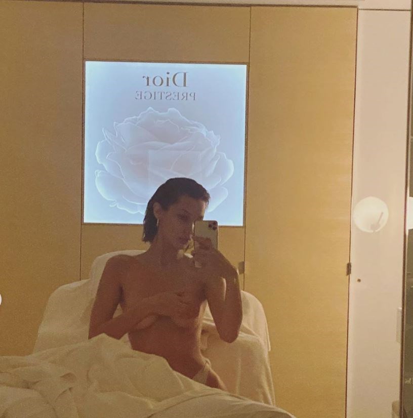 Η Μπέλα πόζαρε και τόπλες, καλύπτοντας ωστόσο το στήθος με τα χέρια της.