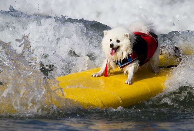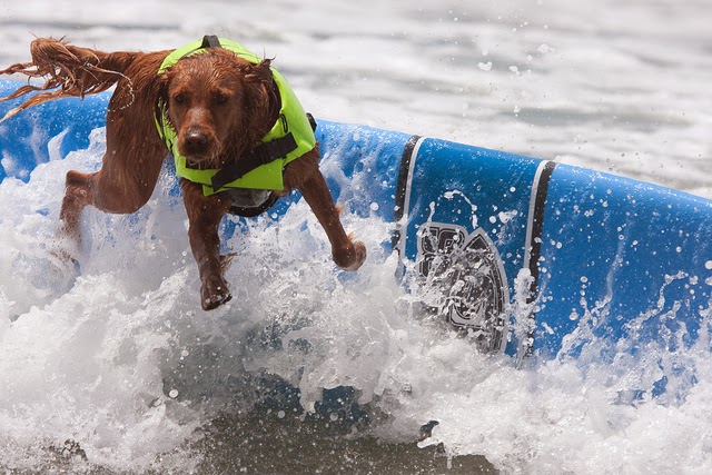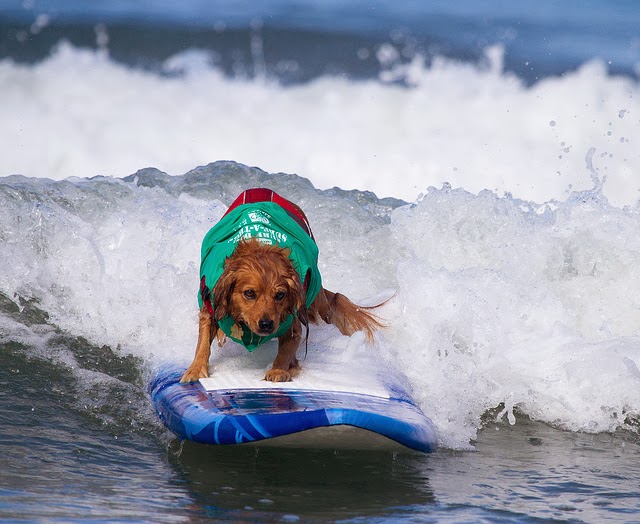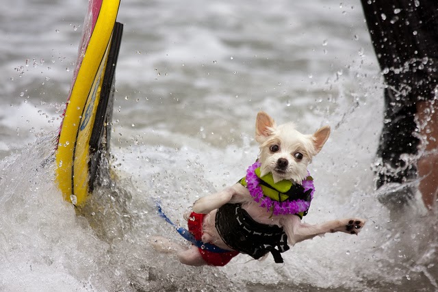 Κάπως έτσι θεσπίστηκε πριν από κάποια χρόνια ο θεσμός Surf Surf Dog που λαμβάνει χώρα κάθε χρόνο στο Χάντινγκτον Μπιτς της Καλιφόρνια και συγκεντρώνει πάνω από σαράντα τολμηρούς σέρφερ… σκύλους, που δαμάζουν τα κύματα χωρίς ενδοιασμούς και βρέχονται μέχρι το κόκαλο.