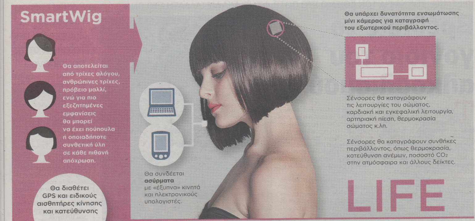 Μετά τα “έξυπνα” ρολόγια που ήδη έχουν τεθεί σε κυκλοφορία από διάφορες εταιρίες, τα “εξυπνα” γυαλιά της Google που λειτουργούν ως ηλεκτρονικοί υπολογιστές, έρχεται η σειρά μιας ακόμα συσκευής υψηλής τεχνολογίας, αυτή την φορά υπό τη μορφή περούκας.