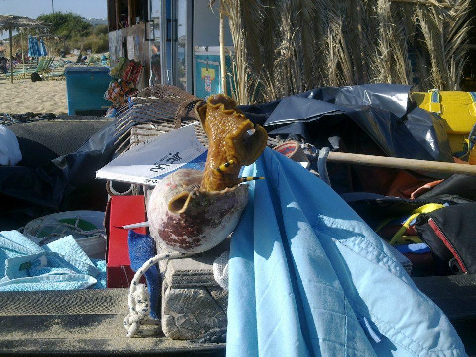 Ένα γιγαντιαίο θαλάσσιο σαλιγκάρι εντόπισε σε βάθος 10 μέτρων ο Θύμιος Μοσχόπουλος στην περιοχή Γλαρονήσι, δίπλα στην παραλία «Μεγάλη Άμμος» στις Μηνιές Κεφαλονιάς.Αφού το φωτογράφησε και το «θαύμασε» με την παρέα του το επέστρεψε στο φυσικό του περιβάλλον, το βυθό.