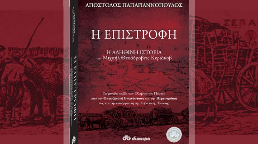 Το νέο βιβλίο του Απόστολου Παπαγιαννόπουλου «Η Επιστροφή: Η αληθινή ιστορία του Μιχαήλ Θεοδόροβιτς Κυριάκοβ», παρουσιάστηκε το απόγευμα σε εκδήλωση στο βιβλιοπωλείο «Ιανός».Πρόκειται για το αποτέλεσμα πολύχρονης έρευνας του συγγραφέα σε αρχειακό υλικό και στο οικογενειακό αρχείο, που του εμπιστεύτηκαν οι συγγενείς ενός σπουδαίου απόδημου Έλληνα, ο οποίος με την επιμονή και σκληρή δουλειά κατάφερε να ανέβει στις πιο υψηλές βαθμίδες της εξουσίας της πρώην ΕΣΣΔ μετά την Οκτωβριανή Επανάσταση και να παραμείνει αξιοσέβαστη προσωπικότητα μέχρι το τέλος της ζωής του.«Είναι αληθινή ιστορία, μέσα από την οποία γίνεται αντιληπτή η πορεία όχι μόνο ενός προσώπου και της οικογένειας του, αλλά ότι αυτό εκπροσωπούσε, έναν ρωμαλέο ελληνισμό που έζησε και ανδρώθηκε στην πρώην ΕΣΣΔ μέσα από δύσκολες συνθήκες. Μου εμπιστεύθηκαν συγγενείς του, το οικογενειακό τους αρχείο, μαζί με σπάνιες φωτογραφίες της εποχής και πλούσιο υλικό» τόνισε αναφερόμενος στο νέο του βιβλίο ο κ. Παπαγιαννόπουλος.Ο Μιχαήλ Θεοδόροβιτς Κυριακόβ γεννήθηκε στο Κάρς το 1915 και αγωνίστηκε μαζί με τους άλλους πόντιους για την επιβίωση στα βουνά του Καυκάσου. Μετά την Οκτωβριανή Επανάσταση αναδείχθηκε, χάρη στις ικανότητες και το σθένος του σε υψηλά αξιώματα, φτάνοντας να γίνει και υφυπουργός στην πρώην ΕΣΣΔ. Διακρίθηκε με υψηλές τιμές και μετάλλια, πολέμησε εθελοντής κατά των γερμανών στην πολιορκία του Λένινγκραντ και ετάφη με κρατική δαπάνη σε κοιμητήριο επισήμων προσώπων στη Μόσχα. Μέσα από τη δική του ζωή, ο συγγραφέας αναφέρεται στο έπος του ποντιακού ελληνισμού στην πρώην ΕΣΣΔ, ως την «Επιστροφή» των νέων Αργοναυτών στην Ελλάδα.«Η αυτογνωσία του Κυριάκοβ στη διάρκεια της ζωής του περνάει μέσα από διάφορες παραδοχές και αναθεωρήσεις και δίνει τα δικά της μηνύματα. Ο άνθρωπος αναπτύσσεται μόνο μέσα στη δημοκρατία. Μέσα από τις δικτατορίες δε βγαίνει φως. «”Εύδαιμον το ελεύθερον” αναφέρει η αρχαιοελληνική γραμματεία» τόνισε, σχολιάζοντας το βιβλίο, ο ομότιμος καθηγητής της Νεοελληνικής Γλώσσας του Α.Π.Θ. Χρίστος Τσολάκης.«Ο συγγραφέας δίνει αλήθειες καλογραμμένες και αξίες διαχρονικές του ελληνισμού, όπως η παιδεία, η οικογένεια, η ορθοδοξία, αυτά που εκπροσωπούσε ο ελληνισμός σε αυτές τις περιοχές, οι νέοι Αργοναύτες» πρόσθεσε ο πρόεδρος του Σωματείου Παναγία Σουμελά, Γιώργος Τανιμανίδης.Τη συζήτηση συντόνισε η δημοσιογράφος Νατάσα Μποζίνη, η οποία ανέγνωσε αποσπάσματα από το νέο βιβλίο του συγγραφέα.Ο Απόστολος Παπαγιαννόπουλος γεννήθηκε στην Καρδίτσα και ζει και εργάζεται στη Θεσσαλονίκη. Σπούδασε αρχιτεκτονική στην Πολυτεχνική Σχολή Θεσσαλονίκης και επί 35 χρόνια υπήρξε διευθυντής στις τεχνικές υπηρεσίες του δήμου Θεσσαλονίκης αρμόδιος για αρχιτεκτονικά, πολεοδομικά, αναπτυξιακά και περιβαλλοντικά θέματα. Ασχολήθηκε με την ιστορία της Θεσσαλονίκης, της Μακεδονίας και της Σύγχρονης Ελλάδας , με την μελέτη και ανάδειξη ιστορικών μνημείων και τόπων καθώς και με την αξιοποίηση της Αρχιτεκτονικής Κληρονομιάς. Η «Επιστροφή» είναι το δέκατο βιβλίο του και κυκλοφορεί από τις εκδόσεις «Διόπτρα».
