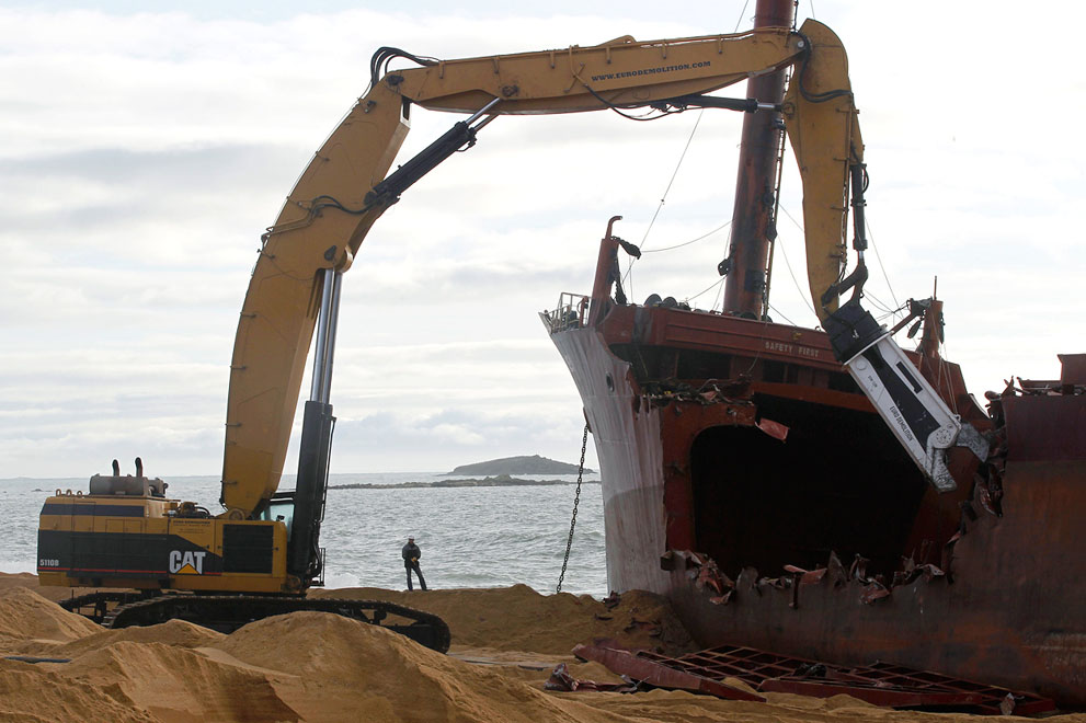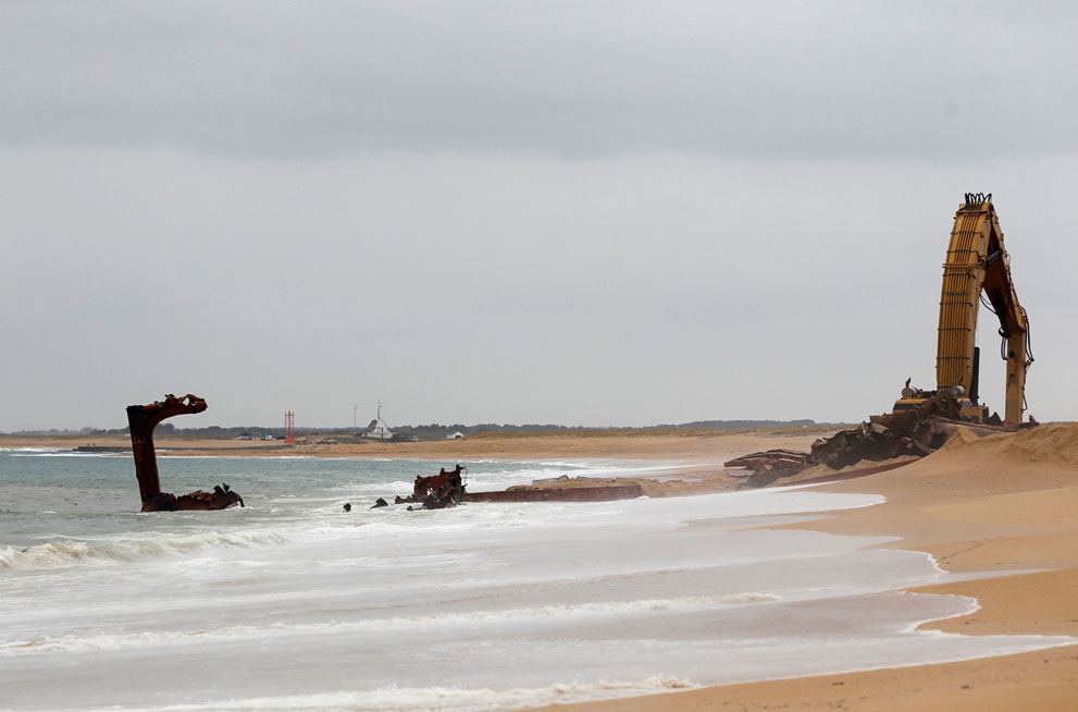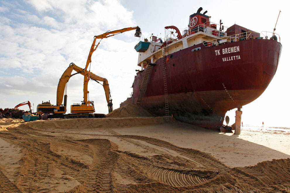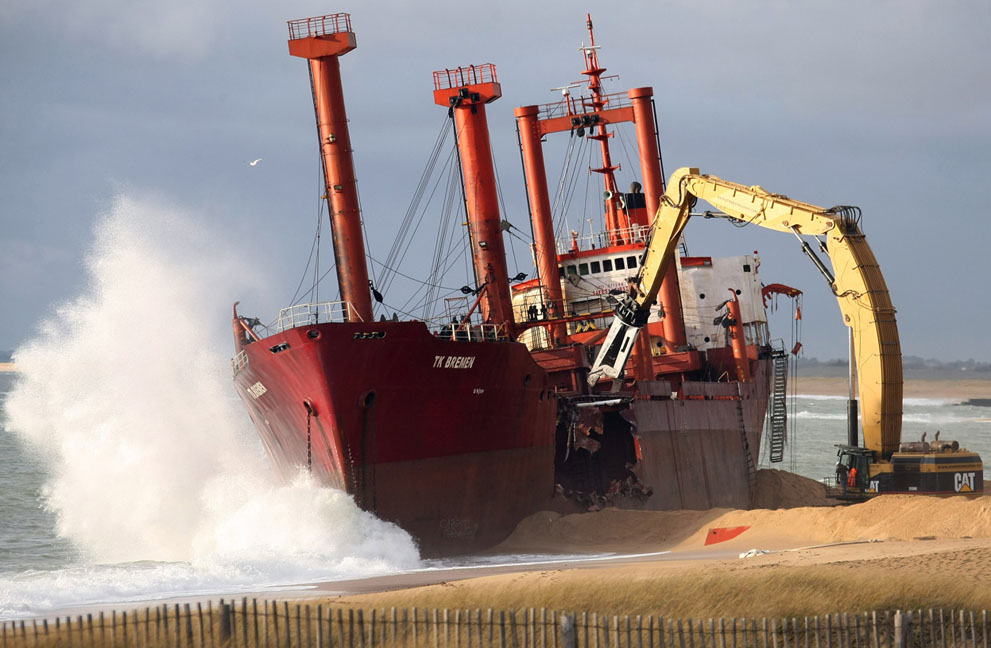 Πριν από ένα περίπου μήνα, το φορτηγό πλοίο, «TK Bremen» με σημαίας Μάλτας, προσάραξε κατά τη διάρκεια σφοδρής καταιγίδας στην παραλία Kerminihy στη Βρετάνη της Γαλλίας.Το 109 μέτρων φορτηγό πλοίο, άρχισε να χάνει καύσιμα και ο κίνδυνος να βρεθούν στις ακτές και στην θάλασσα και οι 220 τόνου μαζούτ που είχε στις μηχανές του ήταν μεγάλος.Οι έλεγχοι έγιναν και η ζημία θεωρήθηκε από τους εμπειρογνώμονες πολύ σοβαρή για να επισκευαστεί το πλοίο με αποτέλεσμα να ξεκινήσει η διάλυσή του.Με κόστος περίπου 10 εκατ. ευρώ, 40 άνθρωποι εργάζονταν μέρα -νύχτα προκειμένου να διαλύσουν το πλοίο.Ένα μήνα μετά το ναυάγιο… η παραλία σχεδόν έχει «καθαρίσει».