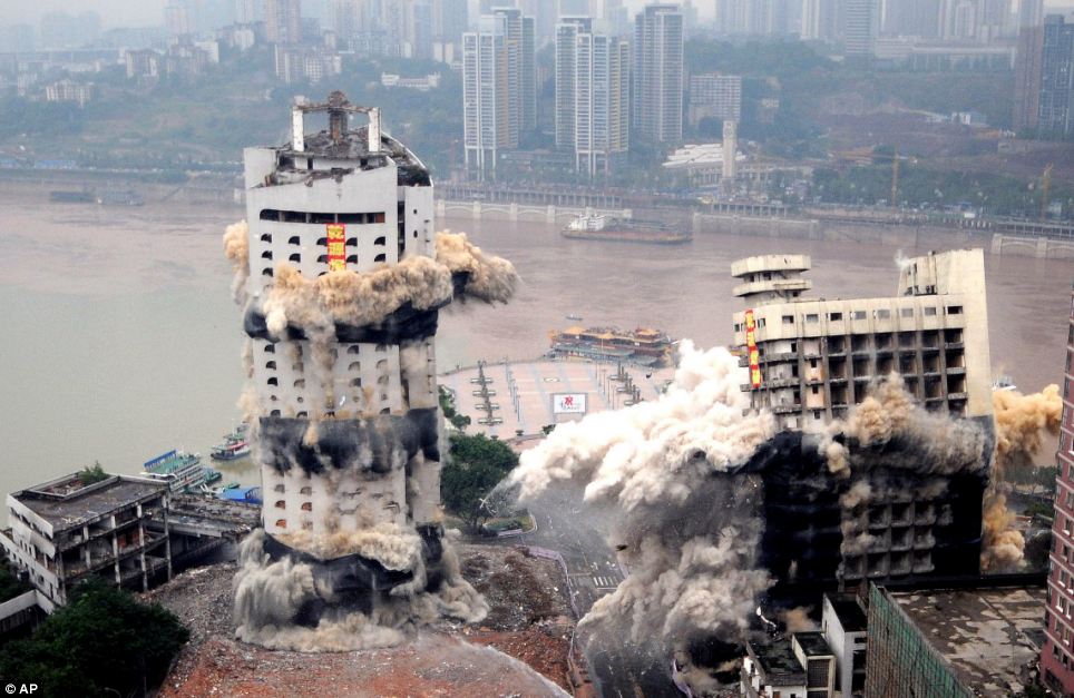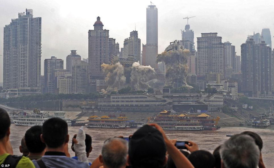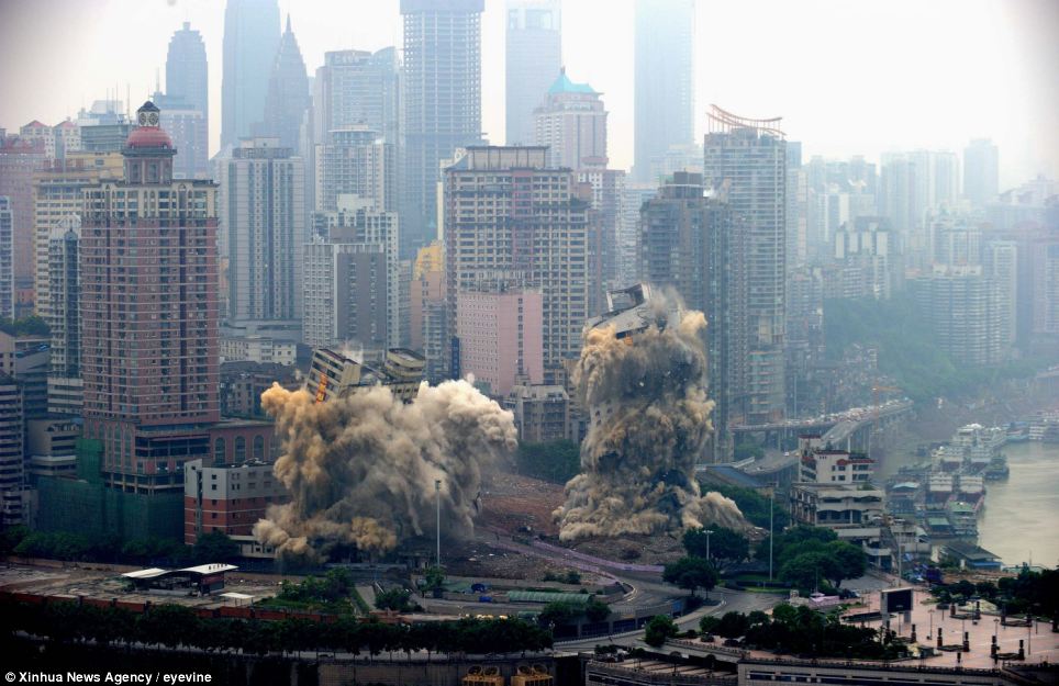 Για χρόνια αποτελούσε το σύμβουλο της πόλης Chongqing στην νοτιοδυτική Κίνα.Χθες, το ξενοδοχείο Three Gorges «έσβησε» μέσα σε λίγα λεπτά έπειτα από μια εντυπωσιακή έκρηξη για τη κατεδάφισή του.Το 32ορόφων κτίσμα, κατέρρευσε σαν τραπουλόχαρτα μπροστά στα έκπληκτα μάτια δεκάδων παρισταμένων.