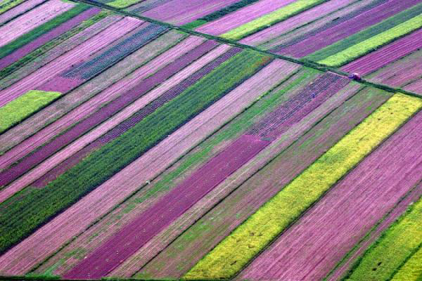 Κόκκινο, κίτρινο, πορτοκαλί, μώβ, ρόζ, πράσινο, όλα τα χρώματα του ουράνιου τόξου απλώθηκαν στο έδαφος, αποδεικνύοντας πως η φύση για μια ακόμη φορά έκανε το θαύμα της. Όταν μάλιστα, τα πολύχρωμα λιβάδια είναι το ένα δίπλα στο άλλο, τότε οι εικόνες μοιάζουν μαγικές!Σαν κάποιος να τα ζωγράφισε, να έβαλε το χεράκι του, δημιουργώντας απίθανα σχήματα και σχέδια στο έδαφος. Αυτό που έχουμε απλώς να κάνουμε εμείς, είναι να αφήσουμε τη φαντασία μας ελεύθερη.