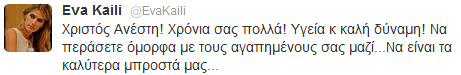 Μέσω twitter εύχεται η Εύα Καϊλή.
