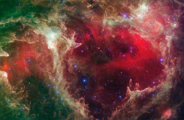 4. Το νεφέλωμα M78: Το όνομα αυτού του νεφελώματος προέρχεται από την ομοιότητά του με την… κακιά μάγισσα των παραμυθιών, γι’ αυτό το ονόμασαν «Witch Head Nebula». Το «συνέλαβ»ε ο φακός του διαστημικού τηλεσκόπιου WISE (Wide-field Infrared Survey – Έρευνα υπέρυθρης ακτινοβολίας με εικόνες ευρέως πεδίου) της NASA με την υπέρυθρη όρασή του. Τα σύννεφα του νεφελώματος, αποτελούν ένα μαιευτήριο νέων άστρων και η σκόνη του λάμπει με ένα πράσινο φως.