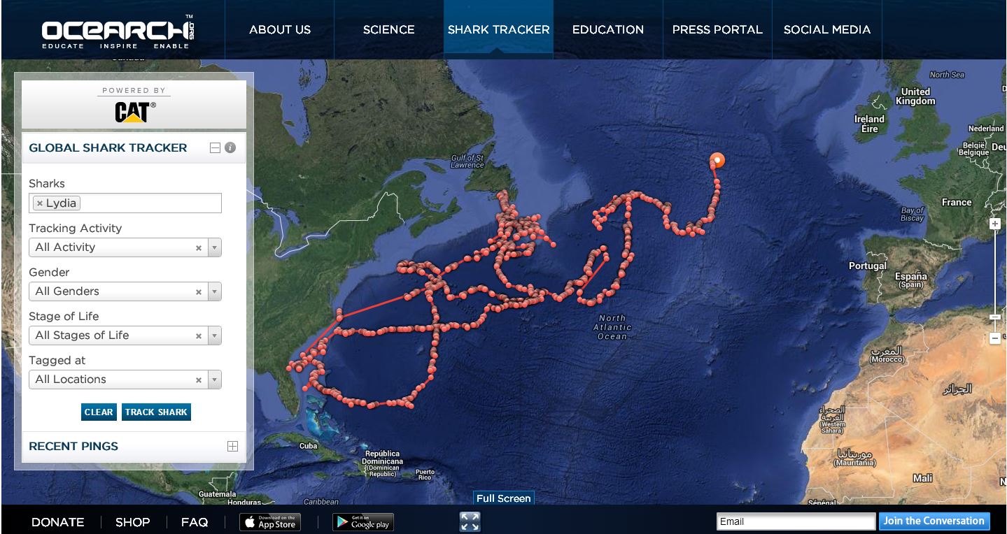 Όσοι ενδιαφέρονται μπορούν να παρακολουθήσουν τη θέση της Λίντια – το όνομα του καρχαρία- μέσω του ιστοτόπου της Ocearch, της ΜΚΟ που υλοποιεί το ερευνητικό πρόγραμμα.