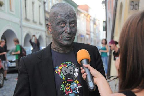 Ο άντρας της φωτογραφίας έχει καλυμμένο το 90% του σώματός του με τατουάζ.Ο Vladimir Franz ισχυρίζεται πως είναι ο ιδανικός υποψήφιος για να γίνει πρόεδρος της Τσεχίας. Ο κ. Franz ευελπιστεί να πάρει τη σκυτάλη από τον νυν πρόεδρο Vaclav Klaus ενώ ήδη έχει ξεκινήσει την προεκλογική του καμπάνια.Αλλά μην βιαστείτε να τον κρίνεται. Ο 53χρονος αυτός λάτρης της δερματοστιξίας, είναι ένας αξιοσέβαστος δάσκαλος υποκριτικής στο Πανεπιστήμιο της Τσεχίας, εικαστικός και συνθέτης όπερας.Διαθέτει επιπλέον και ντοκροτά στη νομική… Είπατε τίποτα;