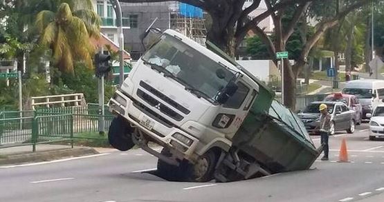 Όλα μπορούν να συμβούν στον δρόμο. Ακόμα και όταν δεν ευθύνεσαι μπορεί να βρεθείς σε πολύ δύσκολη θέση. Όπως ακριβώς βρέθηκε ο οδηγός του συγκεκριμένου φορτηγού. Ξαφνικά η γη άνοιξε και τον… κατάπιε.