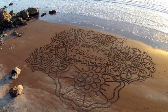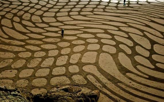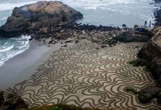 Με όπλα του την υπομονή, τη θέληση και μία… τσουγκράνα, ο Αντρές Αμαδόρ από την Καλιφόρνια μετατρέπει όμορφες παραλίες, σε απίστευτα έργα τέχνης.