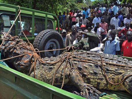 Ένα γιγαντιαίο κροκόδειλο κατάφεραν να πιάσουν, οι κάτοικοι της Ουγκάντας, μετά από κυνήγι 4 ημερών. Το ερπετό «συνελήφθη» κατά μήκος των ακτών της λίμνης Βικτώρια, στο χωριό Κακίρα, καθώς είχε κατασπαράξει έναν χωρικό και είχε ακρωτηριάσει πολλά ακόμα άτομα.