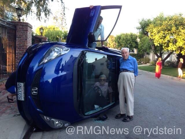 Ένα ηλικιωμένο ζευγάρι στο Μπελ Αιρ ενεπλάκη σε τροχαίο, με αποτέλεσμα να αναποδογυρίσει το αυτοκίνητό τους. Ευτυχώς οι ηλικιωμένοι επιβαίνοντες δεν τραυματίστηκαν και έβγαλαν μία selfie, ενώ περίμεναν την οδική βοήθεια.