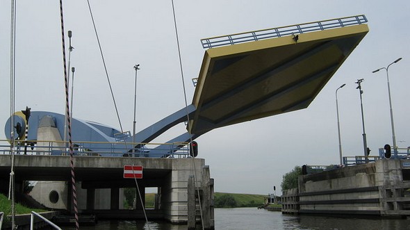 Πρόκειται για μια πλήρως αυτόματη κινητή γέφυρα, γνωστή και με την ονομασία «ιπτάμενη». Και από τις εικόνες μπορείτε βέβαια να καταλάβετε το γιατί: Η γέφυρα μπορεί γρήγορα, εύκολα και αποτελεσματικά να ανυψώνεται από το έδαφος αλλά και να «προσγειώνεται» πάλι πίσω ανάλογα με τις ανάγκες.