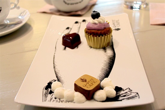 Το σερβίρισμα δεν αποτελεί μια ιδιαίτερη ιεροτελεστία του καταστήματος, καθώς χρησιμοποιούνται πιάτα στη βάση των οποίων υπάρχει ένας γυναικείος λαιμός, ένα χέρι ή αυτιά και επάνω εκεί τοποθετούνται τα γλυκίσματα ανάλογα με το είδος τους.