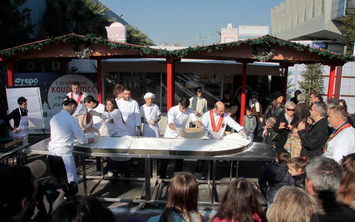 Ξεπέρασε τα 300 κιλά το βάρος του γιγάντιου κουραμπιέ, που παρασκευάστηκε στο πάρκο του Αστερόκοσμου, στο Διεθνές Εκθεσιακό Κέντρο της Θεσσαλονίκης, διεκδικώντας μια θέση στο βιβλίο των ρεκόρ Γκίνες.